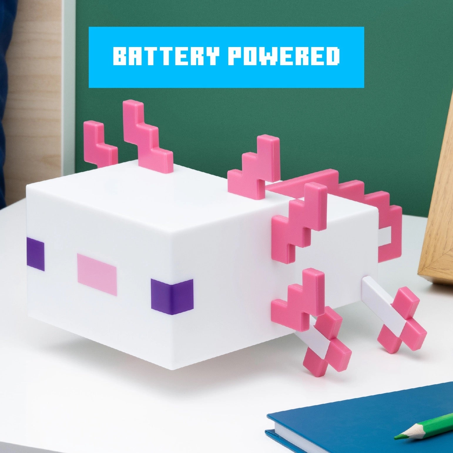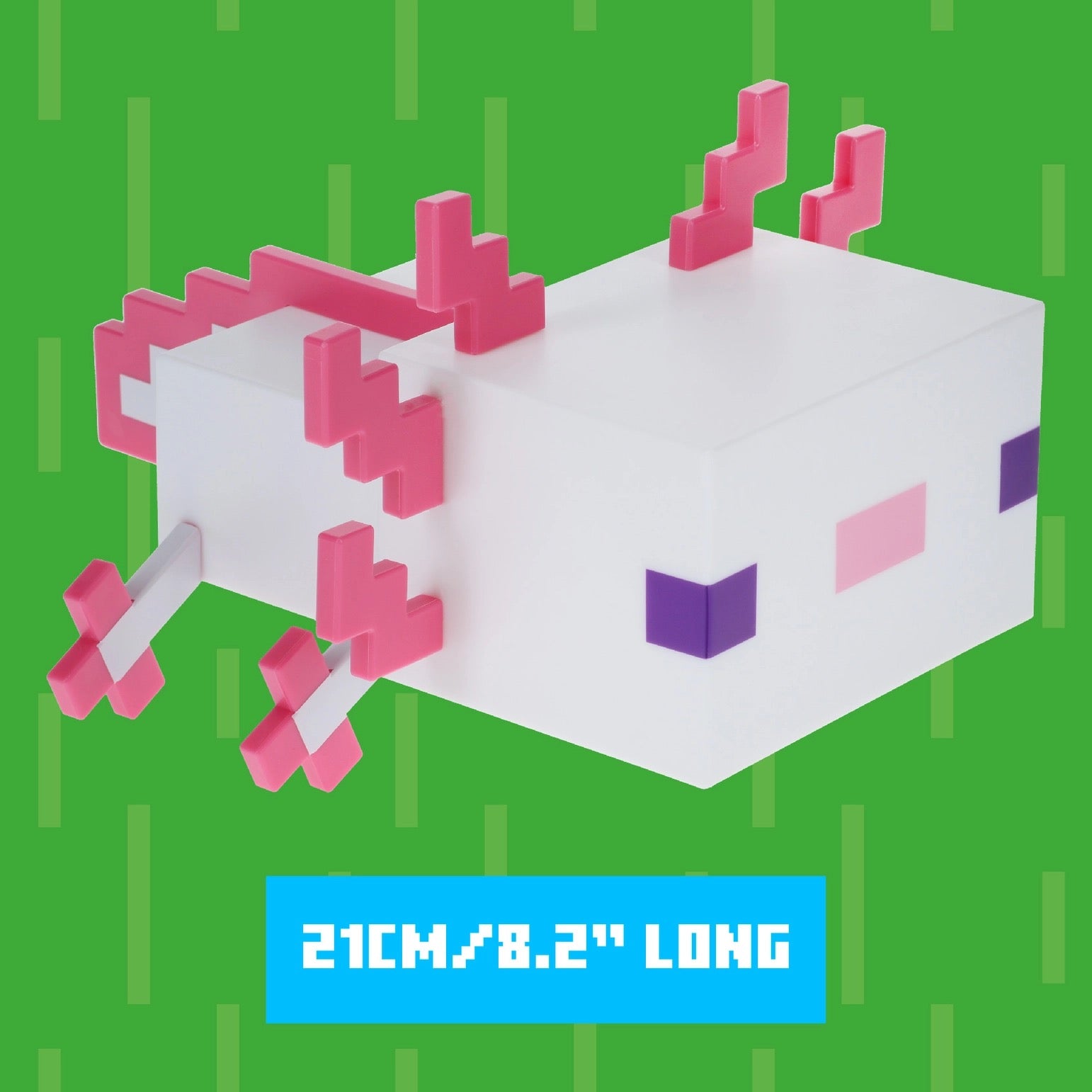 Measuring 21cm (8.2") wide, this adorable light is shaped just like the friendly, fan-favourite axolotl from the game. It emits a soft, soothing pink glow that's perfect for relaxing, winding down after a long gaming session, or adding a gentle ambiance to your bedroom or setup.