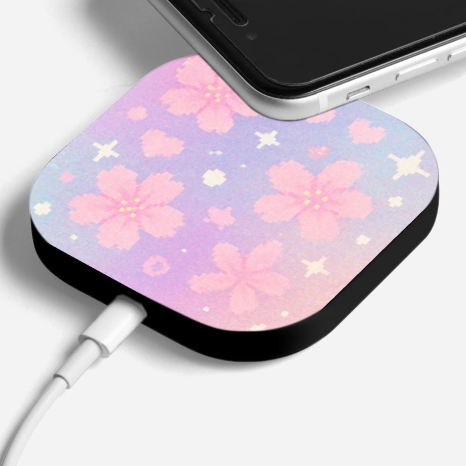 Power up your phone in style with our Sakura Sakura Wireless Charging Pad, designed for gamers, creators, and cozy tech lovers. With a soft pastel pixelated design and seamless edge-to-edge print, this charger brings aesthetic charm to your nightstand or desk — no tangled wires required.