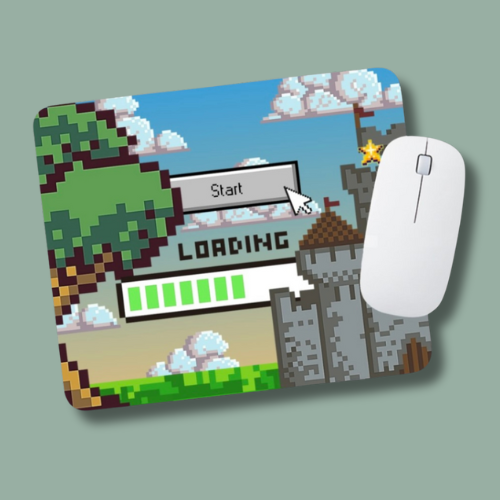 Level up your setup with the Pixel Quest Mousemat – where every click feels like the beginning of an epic adventure! This vibrant, high-quality mousemat features retro pixel art inspired by classic RPGs and cozy fantasy games. From the enchanted castle and loading bar to the iconic “Start” button, it's designed to spark nostalgia and gamer vibes with every glance.